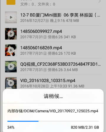 4,这里需要注意的是,移动的文件大小不能超过内存卡的可用大小,否则是无法移动成功的。
