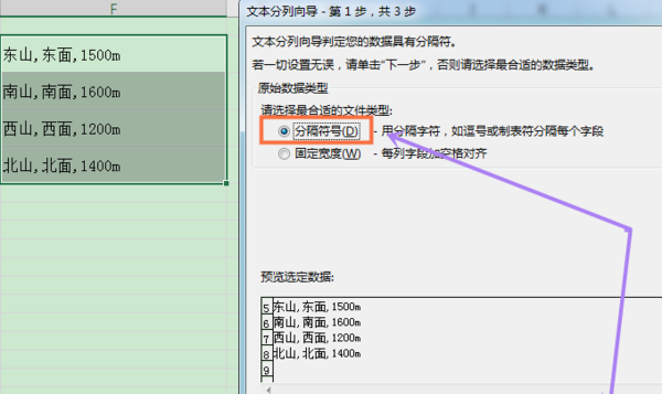 4. 在弹出的分列向导对话框,选择分隔符号,然后下一步