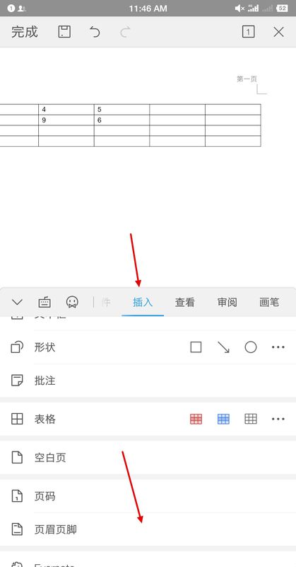 3.在功能页面中找到插入选项,在插入选项下方的类目中找到页眉页脚,点击页眉页脚,如下图所示。