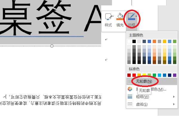 4、右键点击“文本框”,点选”边框“,”无轮廓“,去除边框,只留倒置的文字。