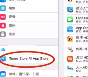 2、从左边的菜单中,首先往下拉,首先找到iTunes store 和app store的选项。点击进入。