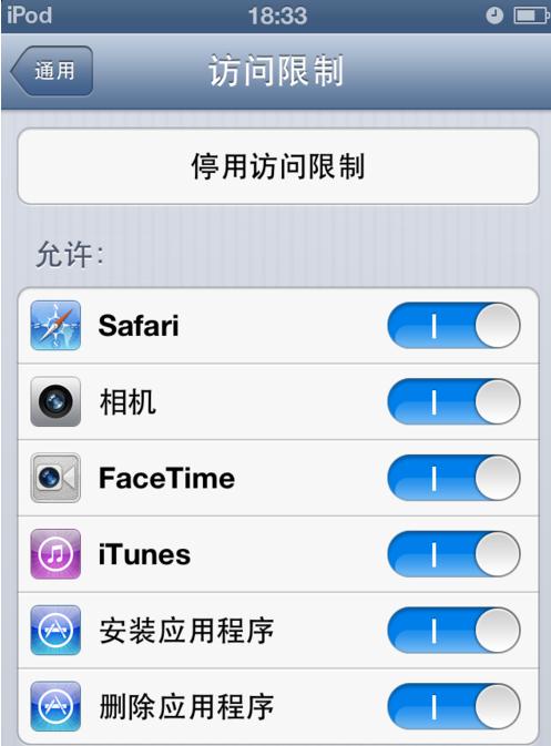 2、进入通用 ,把屏幕向下滑动,找到>访问限制。我们可以看到这时候这个功能是关闭的。