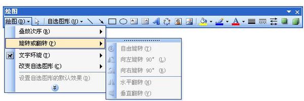 如果希望将Word2010自选图形进行90°旋转,则可以在"格式"功能区进行设置。选中自选图形,在自动打开的"绘图工具/格式"功能区中单击"排列"分组中的"旋转按钮",并在打开的菜单中选择"向右旋转90°"或"向左旋转90°"命令。