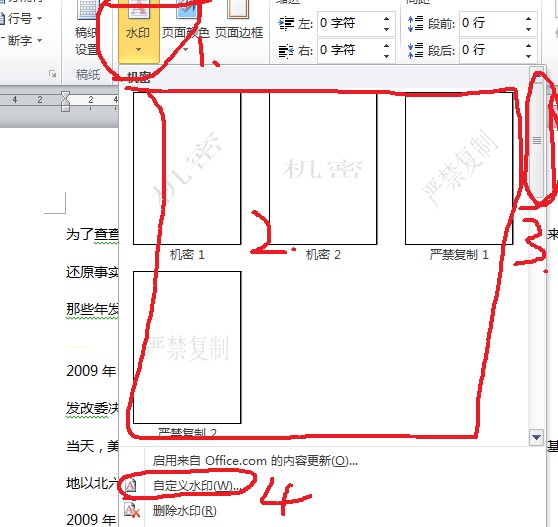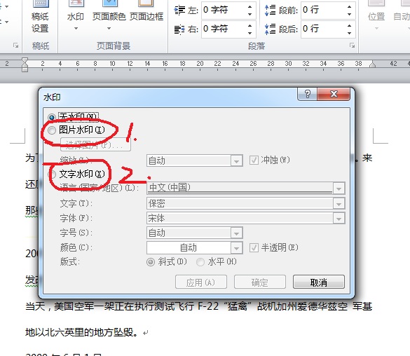 (1)、直接使用word提供的水印方案,这种比较简单(下图中2、3);