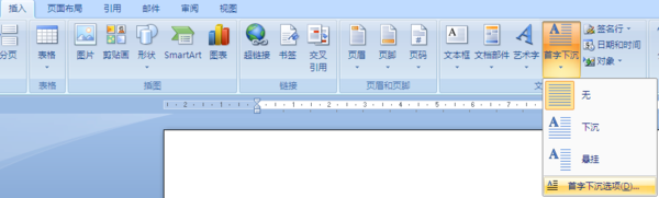 2、单击插入----首字下沉按钮,可以直接选择一种下沉的样式,或单击首字下沉选项;