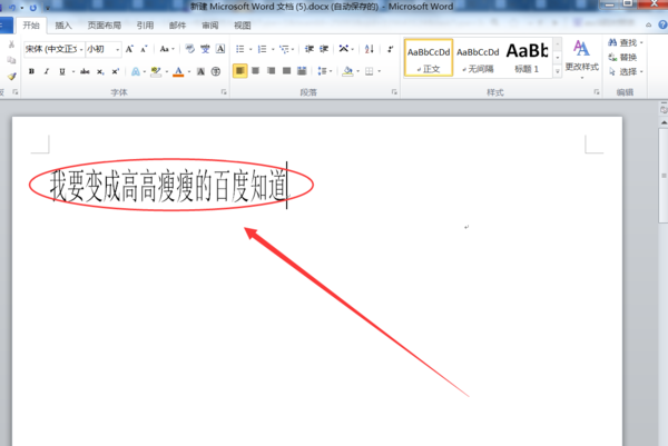 4、返回主文档,可发现已成功将WORD文档中的字变得又高瘦。