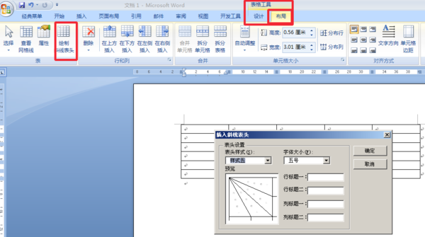 2.选择"表格"菜单中的"绘制斜线表头"命令