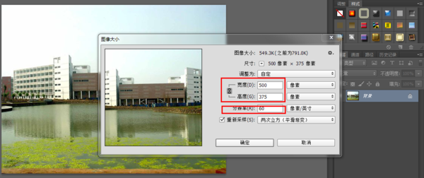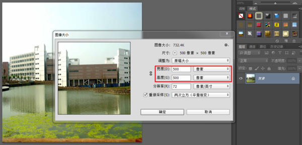 2、根据需要,修改图片像素(如把原图改为500*500像素);