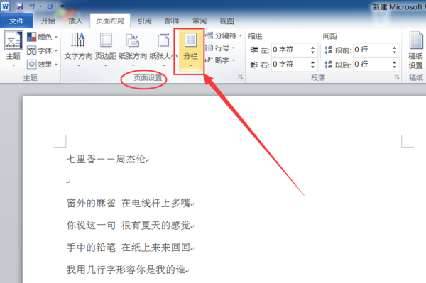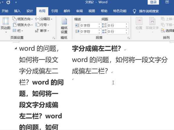 将Word文档分成左右两栏,需要在“页面布局”中设置称两栏。