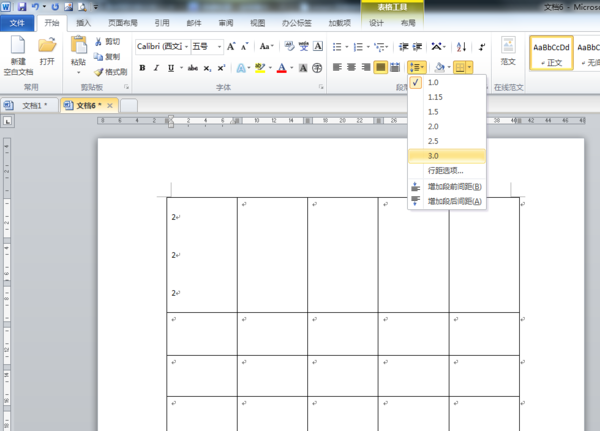 6、参数设置确定好以后,次数表格中文字的行距已发生改变;