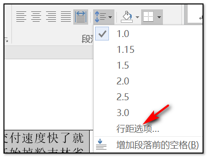 4、点击以后,在下拉选项中找到并点击“行距选项”;