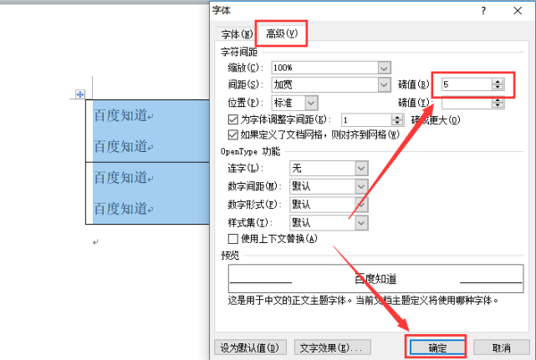 四、点击“高级”,可以看到“字符间距”设置相关参数,在“间距”后面输入需要的字符间距,点击下方“确定”按钮即可。