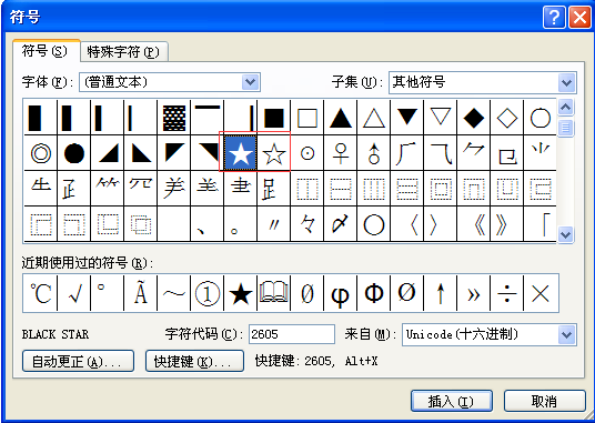 WORD文档里的符号(五角星符号)是怎么弄出来的呢?