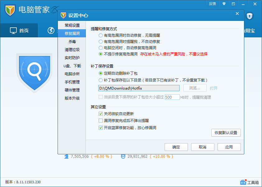 如果需要关闭漏洞修复提示,按照下面图上的操作就行。