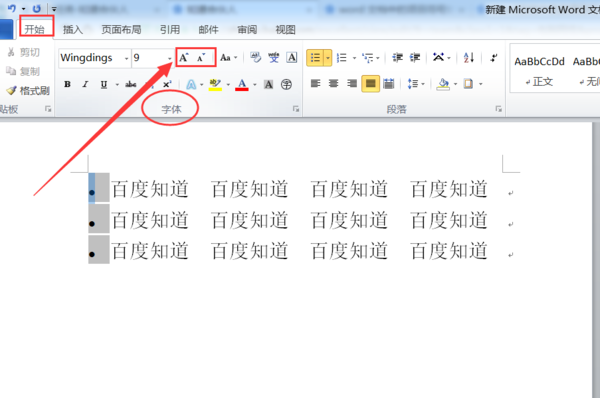 2、在“开始”选项卡中找到“字体”,点击字号加或字号减即可调整项目符号的大小。