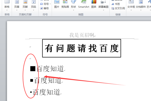 3、返回WORD文档,发现已成功加入黑色小方块,下面在同字号的文本前分别添加了不同大小的黑色小方块,可根据实际需求在步骤2中选择小方块的样式插入。
