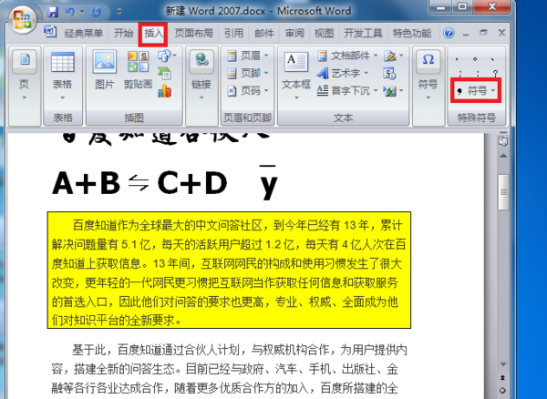 1、打开需要操作的WORD文档,在需要插入黑色小方块的地方点击插入工具栏中的“符号”,并在其下拉选项中点击“其他符号”。