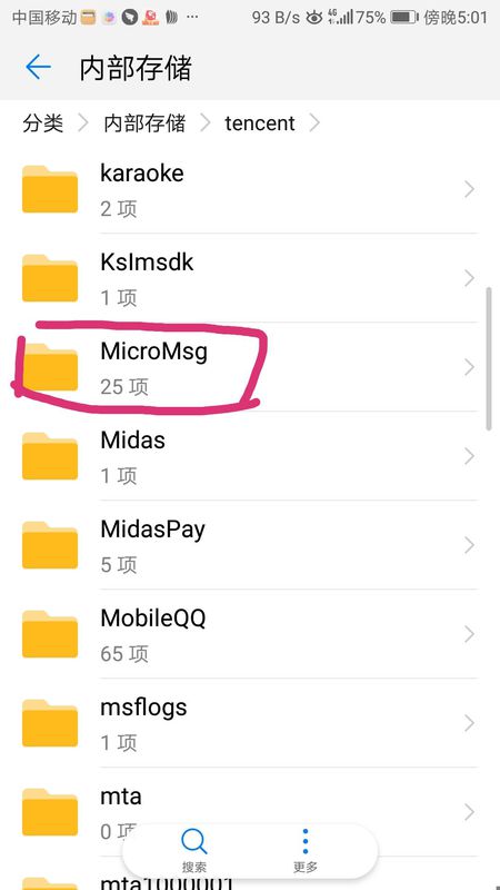 3、进入到tencent文件以后,接着点击【MicroMsg】文件夹。