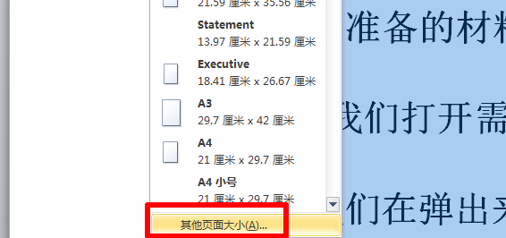 3、然后我们点击打开“纸张大小”后面倒三角形,选择“其他页面大小”。