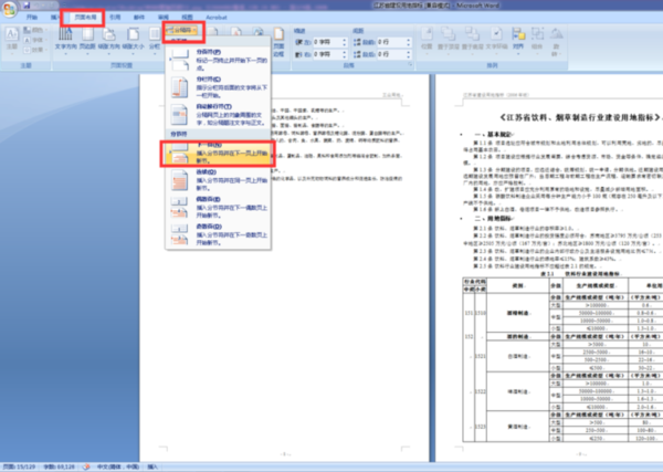 4、点击“页面布局”工具面板中的“分隔符”按钮工具,找到“下一页”并点击进入。