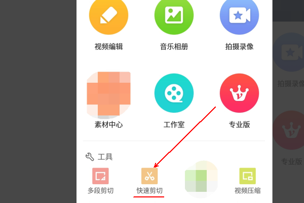 3、在工具界面内找到“快速剪切”选项并单击打开。