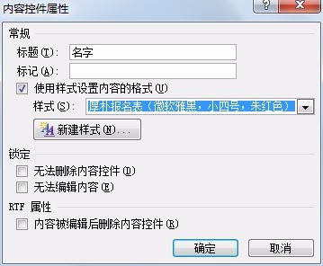 7、 在弹出的内容控件属性中,根据自己的需求,设置标题名称、颜色等,确定,完成。
