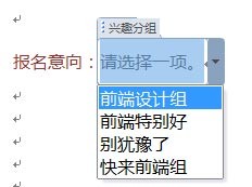 13.在下面那个框添加内容,做好后就是这样。至此,标题说的“Word 2010制作下拉列表”部分已经完成了。