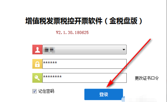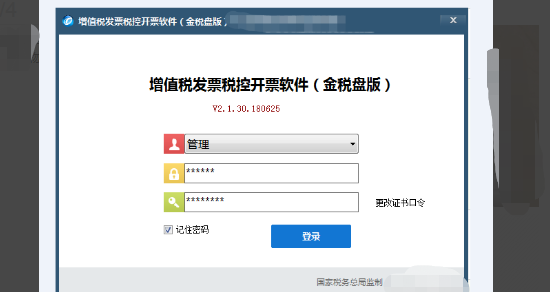 2、双击开票软件会出现如下界面,然后输入账号、密码;账号密码是购买税控盘时软件公司设置的,如果不记得,可联系95113咨询。
