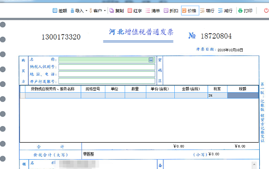 4、选择增值税普通发票,输入购买方、纳税人识别号,货物名称、规格型号,完成开发票开具,如下图所示。