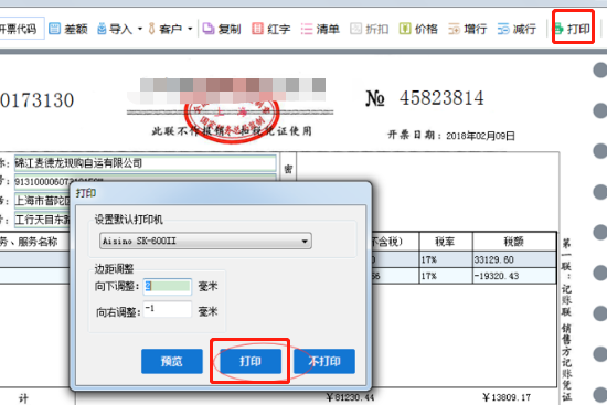 5、核对无误后点击右上角打印,点击打印之后,打印机会自动打印出来,如下图所示。