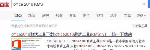 然后我们按照图中所示搜索Office 2016 KMS(其实如果是别的版本把2016改成其他版本即可),然后下载这个软件