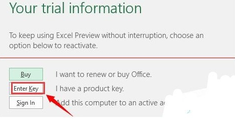 从弹出的“Your trial information”窗口中,点击“Enter Key”按钮,并输入以上官方给出的密钥,进行激活操作。