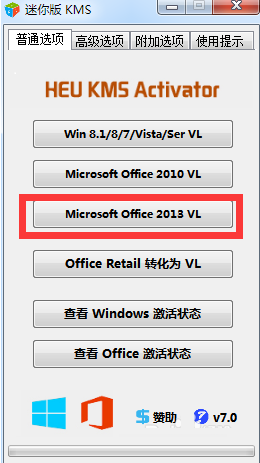 或者切换到“普通选项”界面,点击“Microsoft Office 2013VL”按钮,以激活Office2016软件。