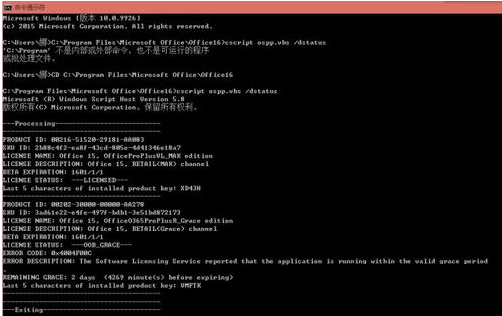 在MSDOS界面中,依次输入以下命令:cd %ProgramFiles%\Microsoft Office\Office16cscript ospp.vbs /inpkey:XXXXXXXXXXXXXXXX(微软官方提供的密钥)