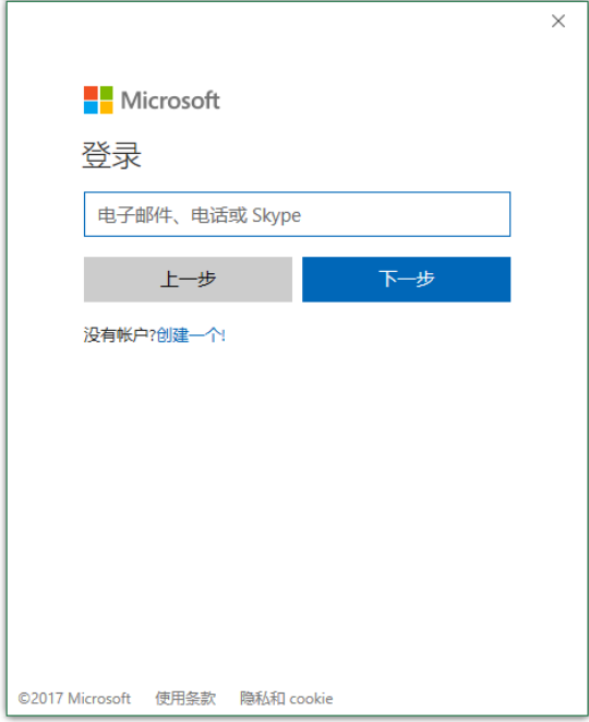 4、这时要求登陆微软的账号,如果你没有,请点击下面的创建帐户,注册帐户的步骤比较简单,按要求填写信息即可,这里不做详细介绍。如果有帐户就直接输入帐户即可。