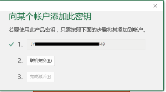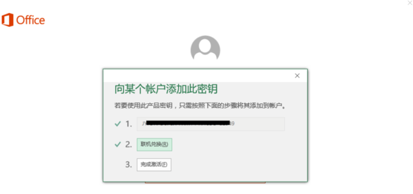 9、完成激活码激活之后,返回Office激活界面,点击完成激活,并选择在微软账号生成的激活码。