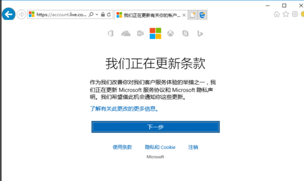 7、进入到微软官方网站后,用刚刚的微软账号密码登录后,点击下一步。