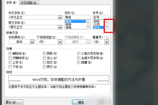 4、在字体选项卡右侧,改变字体号。