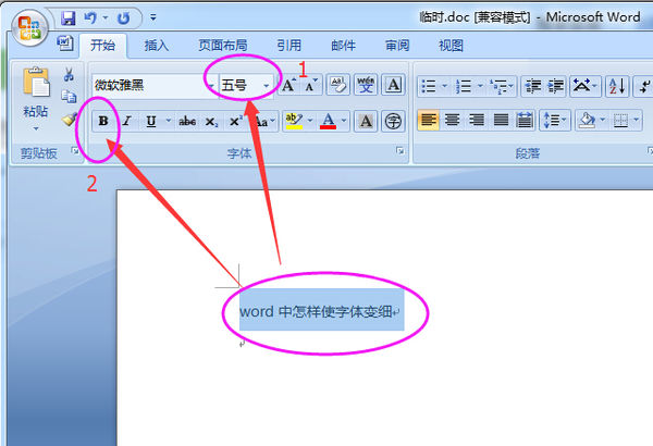 图中2表示调节字体粗细(加粗或不加粗,系统默认不加粗,快捷键Ctrl+B)