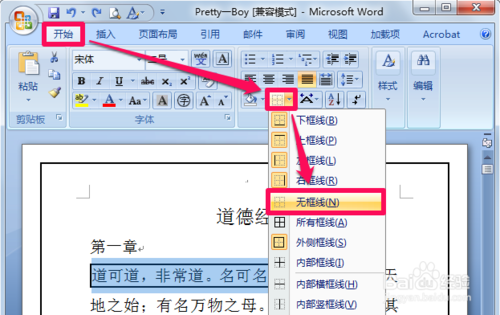 word边框有两种,分别是是word文字边框和word页面边框,下面一一介绍取消方法。