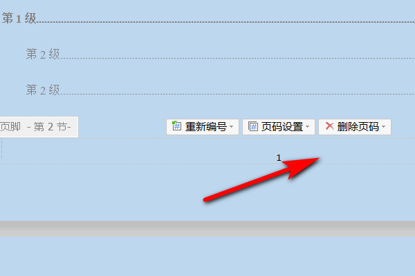 现在第一页页码是1、第二页页码是2、第三页页码是1、第四页是2等,这样的显示方式。接下来我们只需要手动删除“第一页”和“第二页”的页码就可以了。