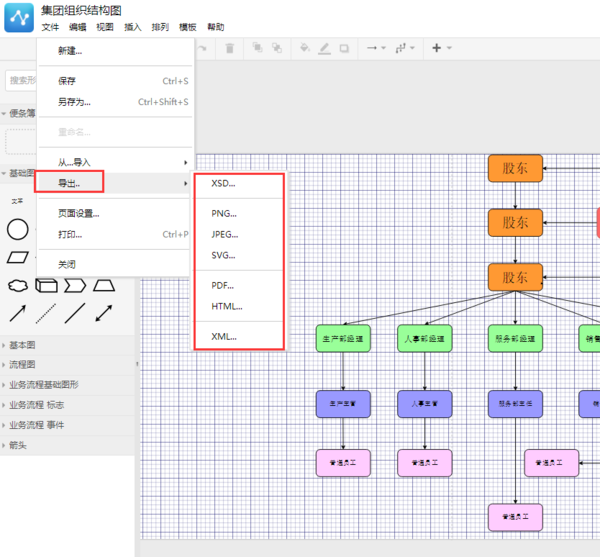 5、画好流程图之后可以导出其他格式也可以在线存储方便下载继续编辑;