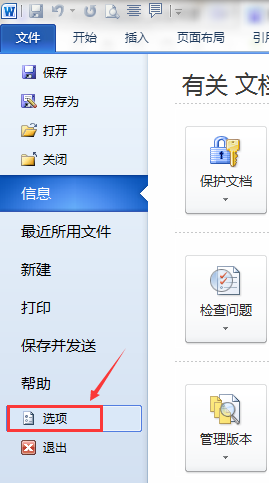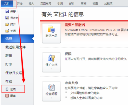 1、打开Word 2010,点击【文件】->【选项】。