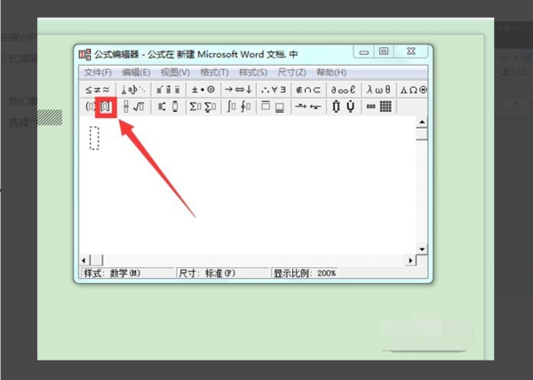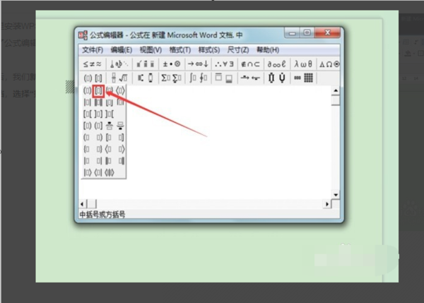 3、打开公式编辑器了之后,由于我们要输入矩阵,矩阵外面有个括号,我们点击最下面那排公式的第二个,如图,就是表示括号的。