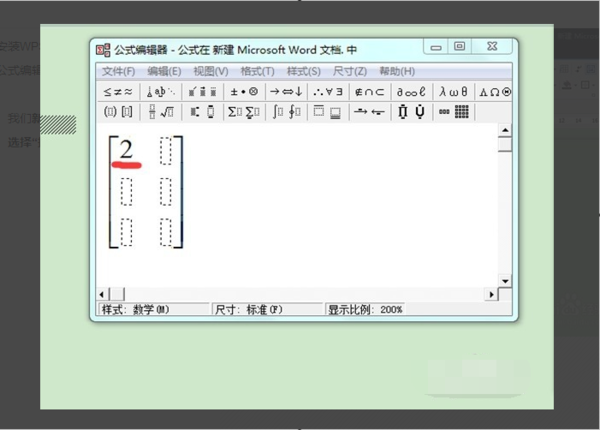 7、然后我们看到编辑区出现了一个矩阵模板,3行2列的,现在就是填写数字的时候了,在每个元素位置输入相应的数字就可以了。