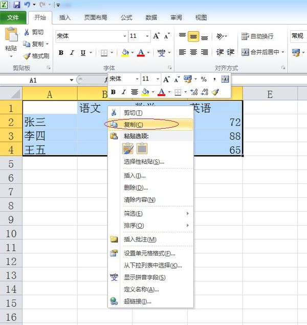 7、这样就得到了行列转换后的表格,然后再全选内容,复制一下;