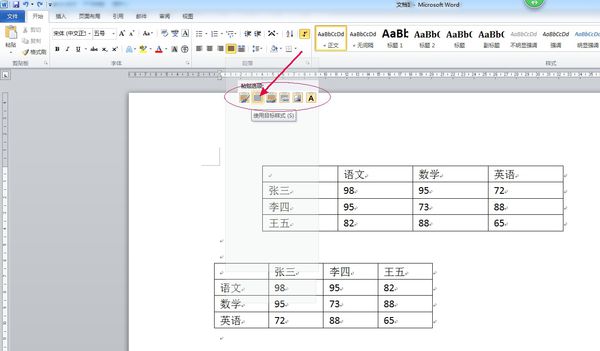 8、再切换到WORD中,点击右键菜单,在右键菜单中选择“粘贴选项“下的“使用目标样式“,这样就实现了表格的行和列的转换;