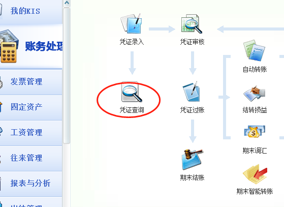 2.进入账务处理界面,点击“凭证查询”,如下图;