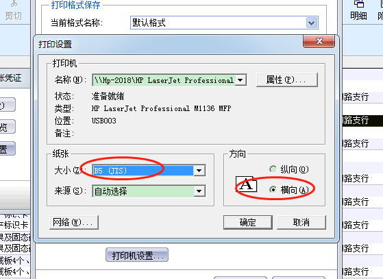 7.进入打印记账凭证来设置,一般根据凭证纸的大小来设置,比如选择“B5JTS”、“横向”,如下图;