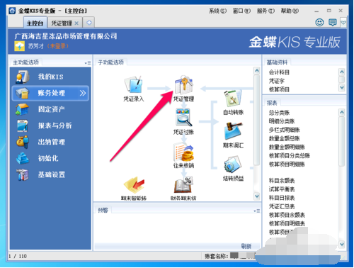 1、登录金蝶系统,在主控台里选择凭证管理的模块,点击打开该模块。